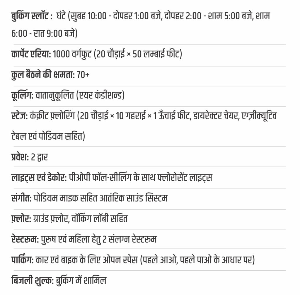 VHSS सांस्कृतिक एवं कन्वेंशन सेंटर नागपुर के मध्य में स्थित, उत्कर्ष, छोटे आयोजनों एवं पेशेवर बैठकों के लिए एक आदर्श स्थल है. 70 से अधिक बैठने की क्षमता और वॉकिंग लॉबी सहित ग्राउंड फ़्लोर पर आसान पहुँच के साथ यह कार्यशालाओं, सेमिनारों, प्रशिक्षण सत्रों, सामुदायिक बैठकों एवं सांस्कृतिक संवादों के लिए उपयुक्त है. सुविचारित इंटीरियर और आवश्यक सुविधाएँ एक सहज, सुविधाजनक और प्रभावी आयोजन अनुभव सुनिश्चित करती हैं.